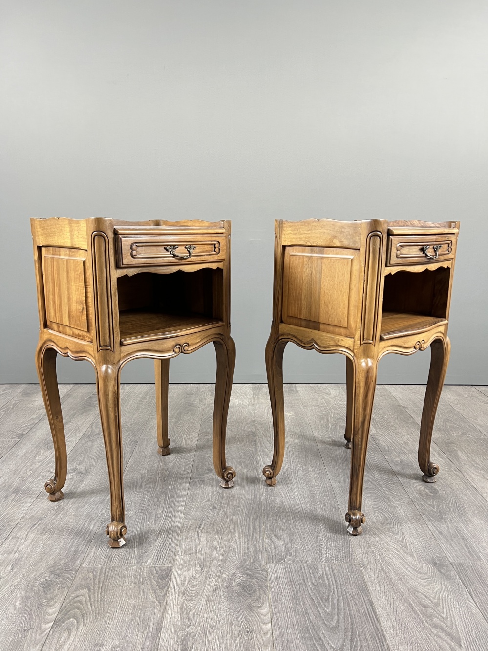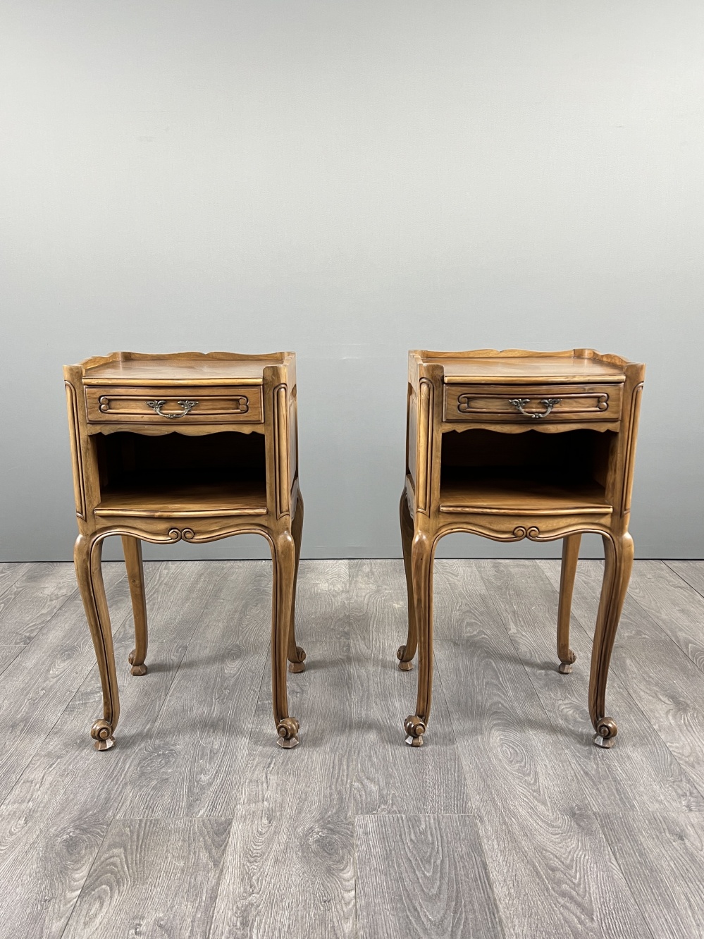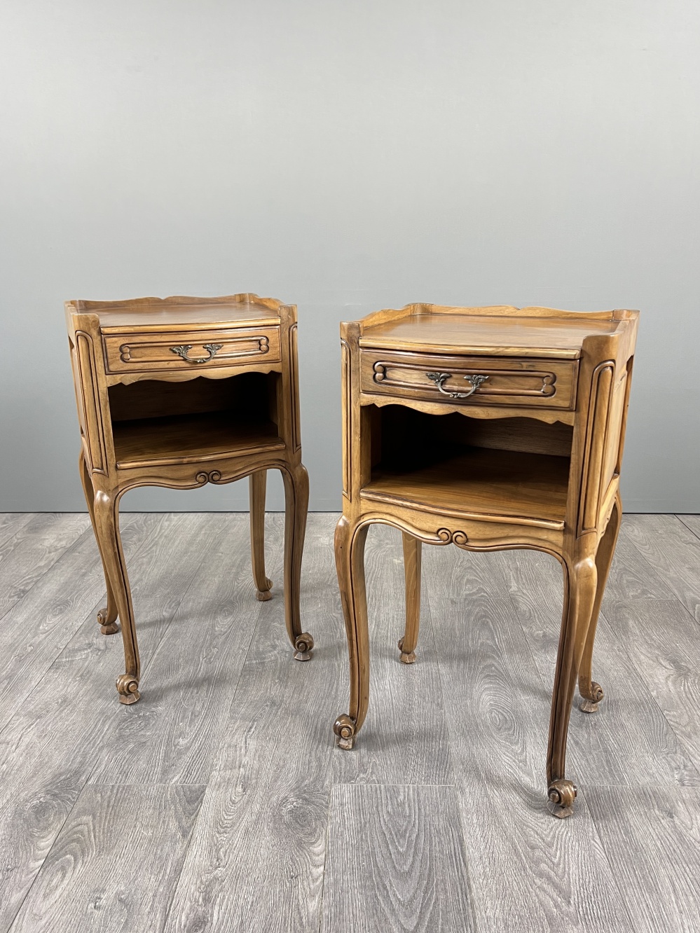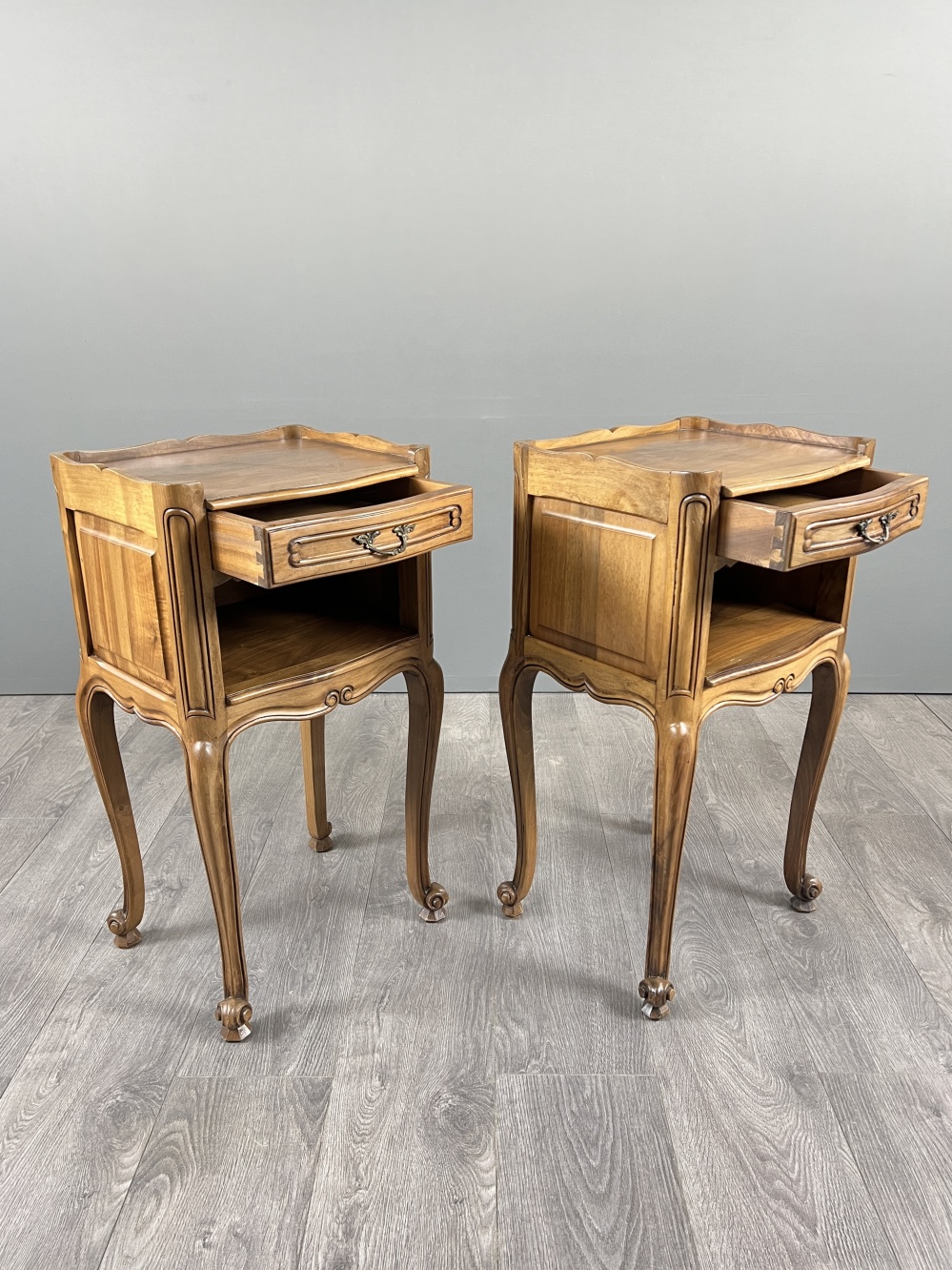 Louis XV style pair of vintage bedside tables