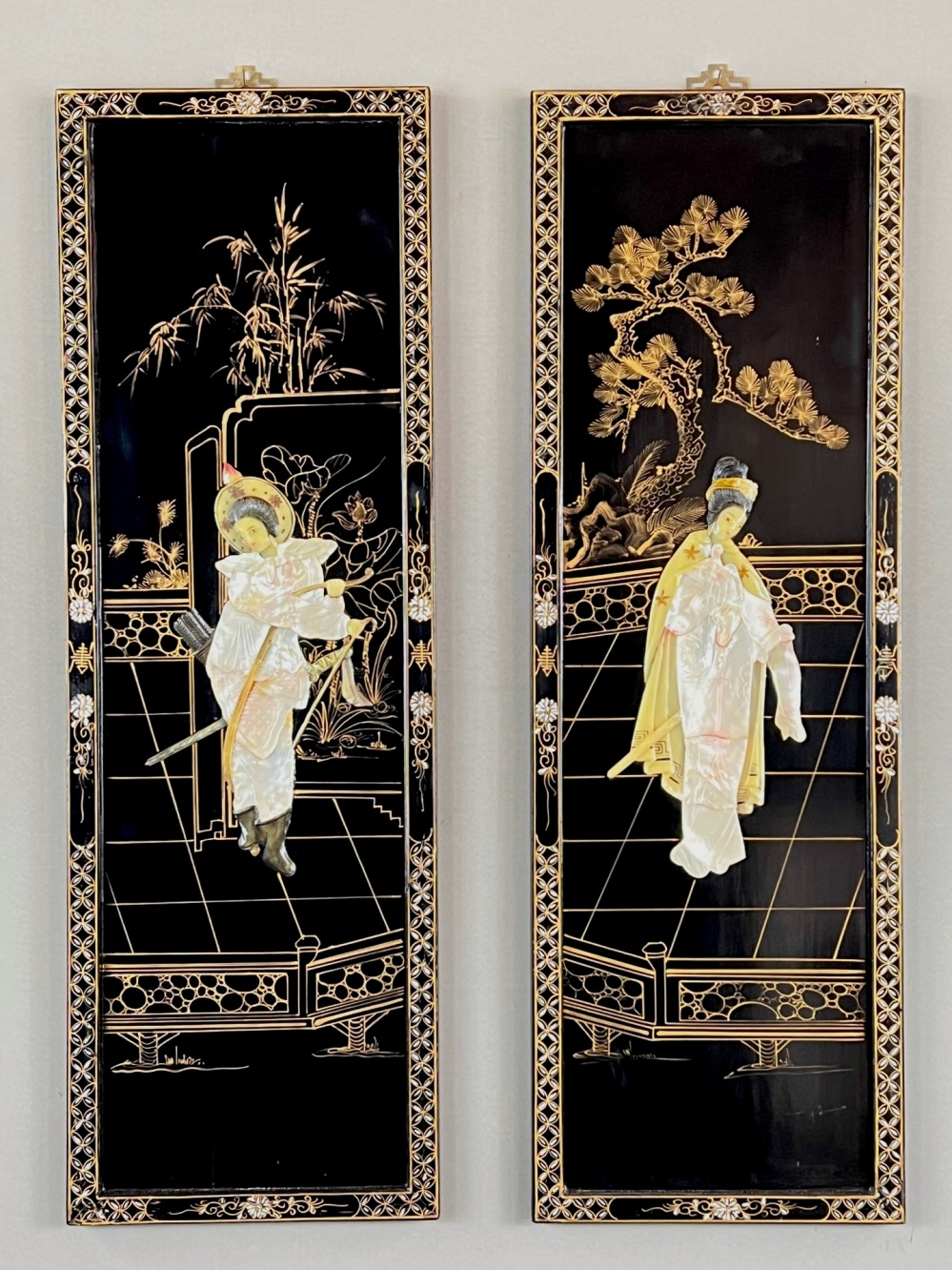 Chinoiserie style a pair of vintage wall panels