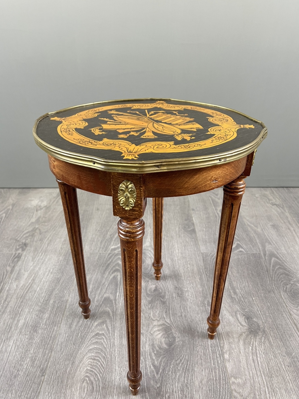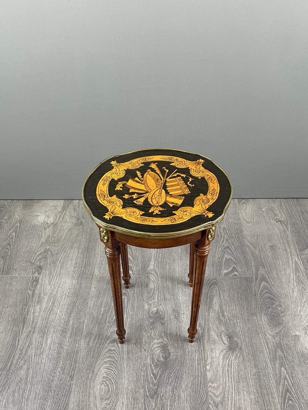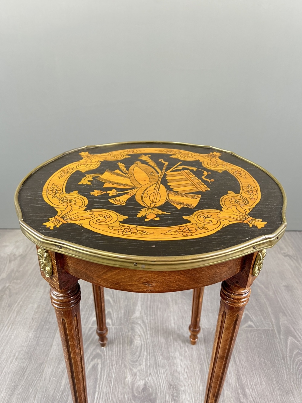 Material: wood, marquetry, bronze