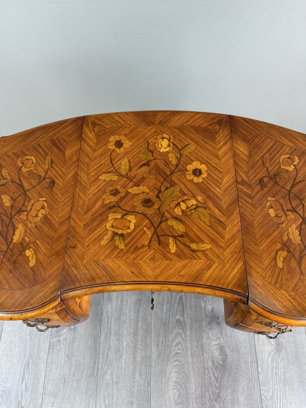 Material: wood, marquetry, bronze